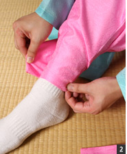 5. 오른쪽 대님도 같은 요령으로 한다.