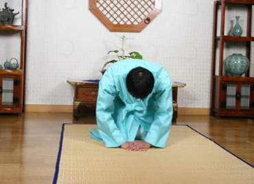 이때는 다른 때와 달리 다리를 벌리고 앉아 큰절을 올리는 경우도 있었다. 그러나 요즘엔 언제나 무릎을 꿇어 절을 하는 쪽으로 통일되는 추세이다.
