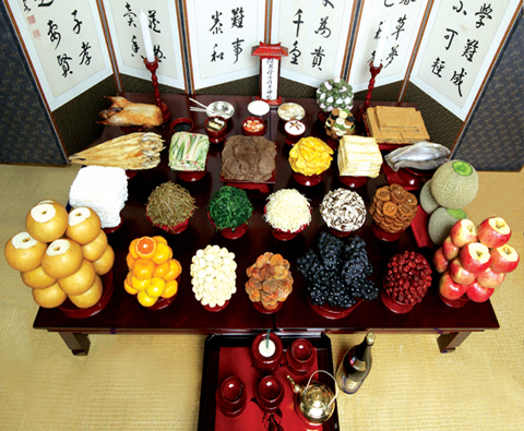 (11) 진찬(進饌) : 적과 함께 식어서는 안될 모든 제수를 웃대 제상부터 차례로 올린다.